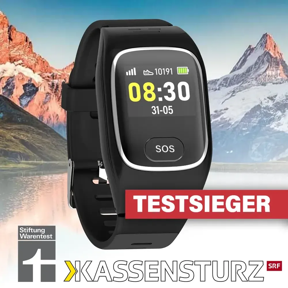 Links zu Kassensturz Bericht (Schweizer Fernsehen SRF): https://www.srf.ch/sendungen/kassensturz-espresso/tests/smartwatches-fuer-senioren-ein-modell-faellt-im-test-durch